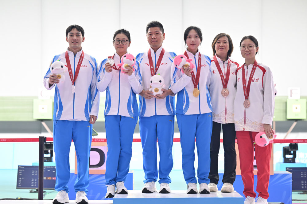 当天进行的其他项目中,安徽队在名将胡凯的带领下以16:6击败河北队,夺得男子10米气手枪团体冠军,吉林队拿到铜牌。女子10米气手枪个人决赛则爆出冷门,广西选手唐晓以240.3环摘金,湖北队阮梦颖与奥运冠军、上海队姜冉馨分获银牌和铜牌。