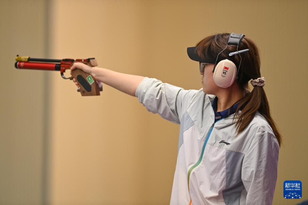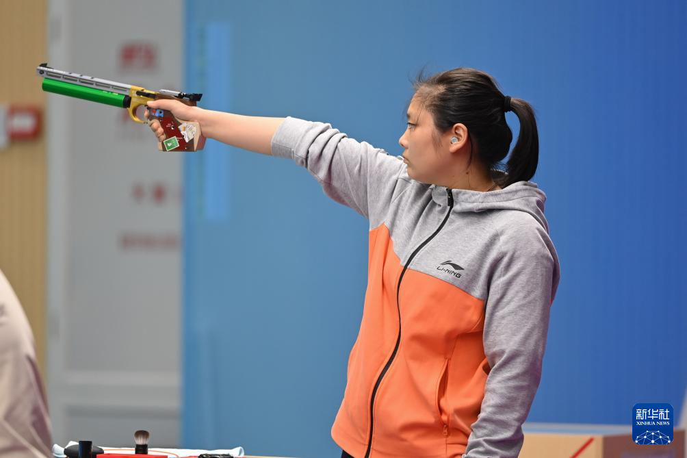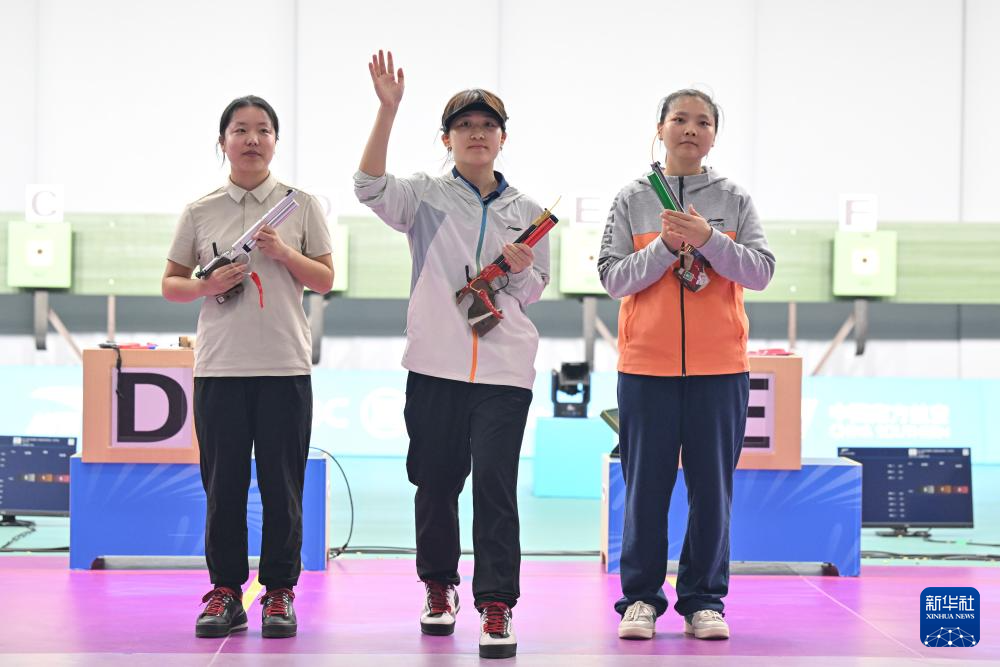 当日,第十五届全运会射击女子10米气手枪决赛在广州举行。