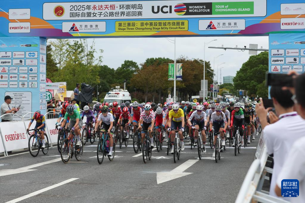 当日,2025年环崇明岛国际自盟女子公路世界巡回赛第三赛段(崇中赛段暨城市绕圈赛)在上海市崇明区举行。