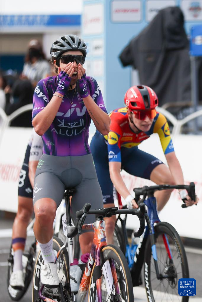 10月16日,赛段冠军丽芙-埃尔奥拉-杰科车队澳大利亚车手塔尔博特在颁奖仪式上庆祝。