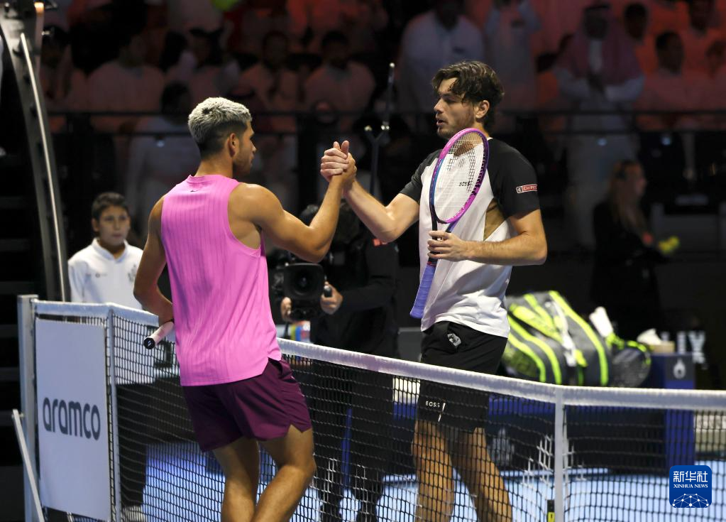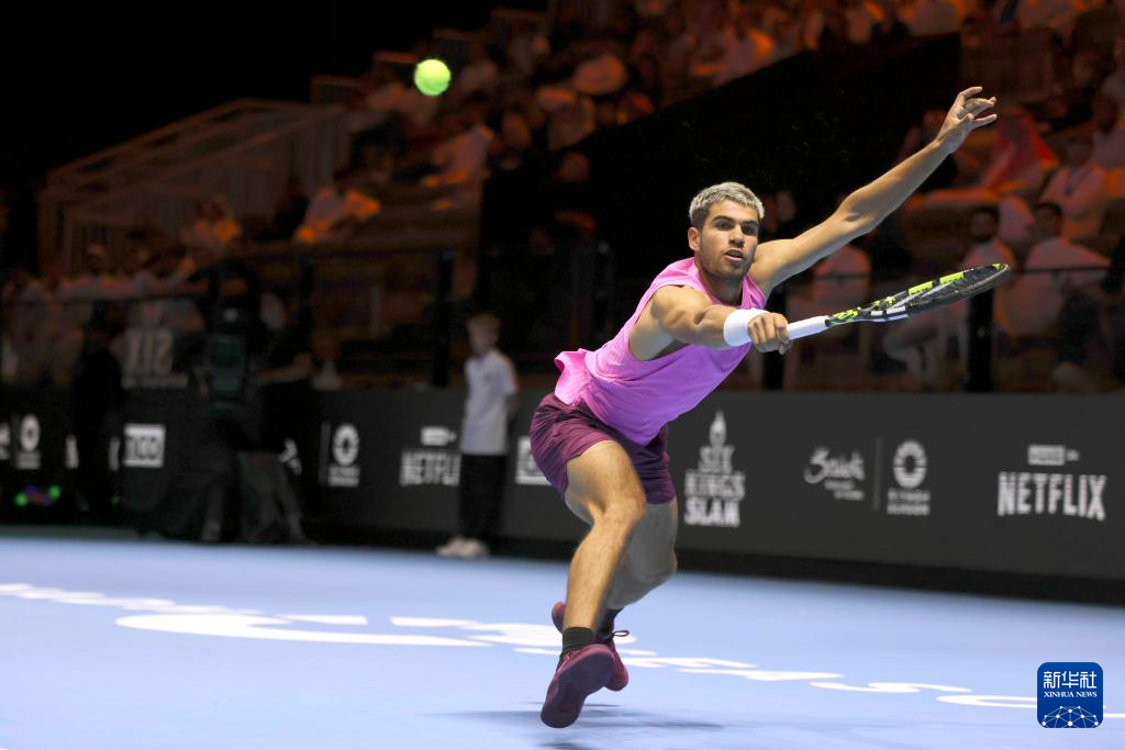 当日,在沙特阿拉伯利雅得举行的“六王大满贯”网球表演赛半决赛中,西班牙选手阿尔卡拉斯2比0战胜美国选手弗里茨,晋级决赛。