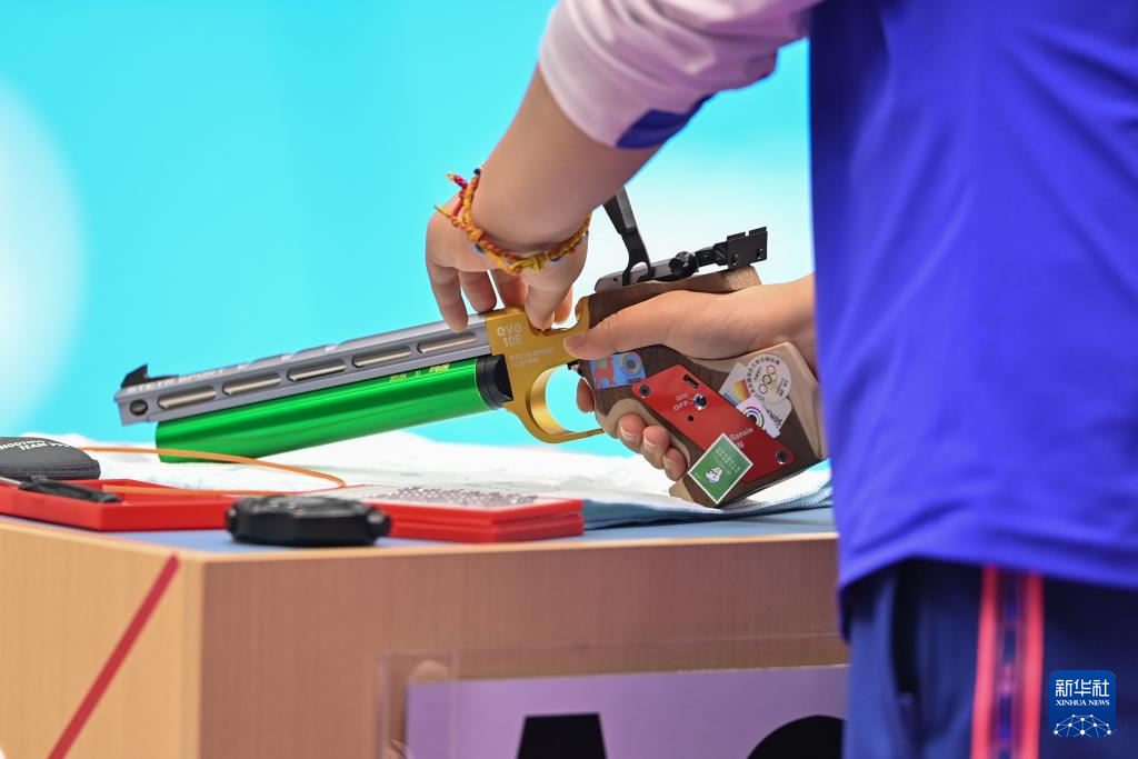 当日,第十五届全运会射击女子10米气手枪团体决赛在广州举行。