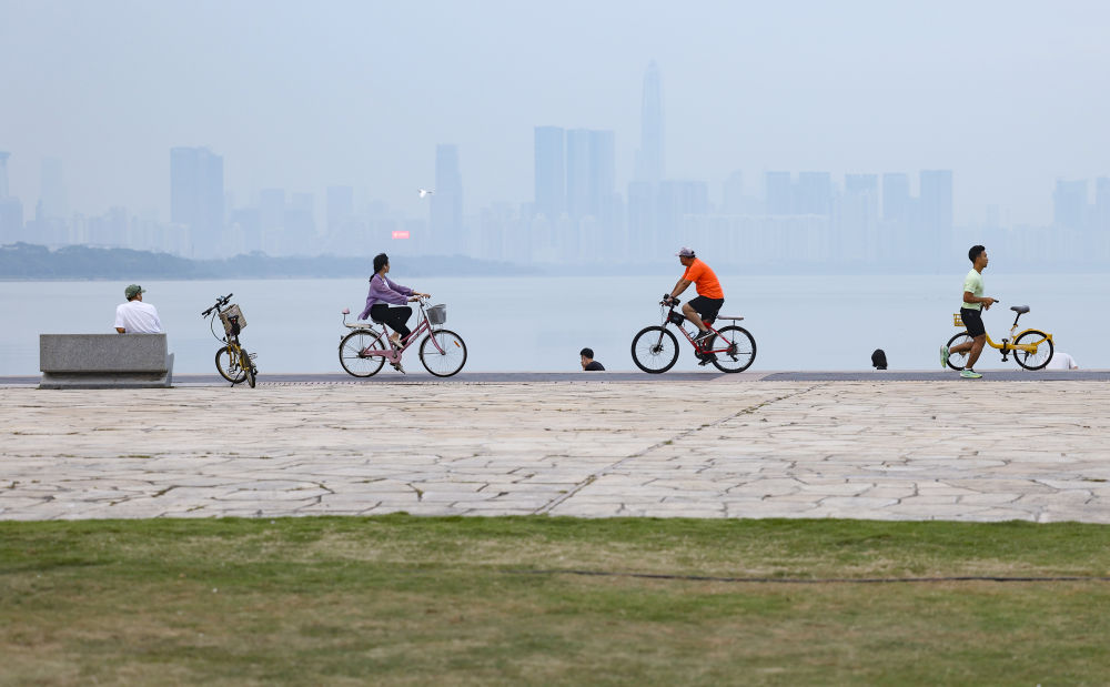 ↑2025年11月5日,市民在深圳湾公园骑行。
