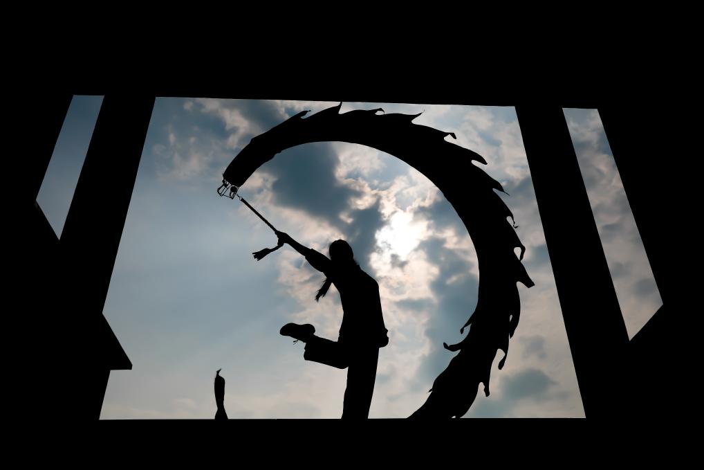 11月10日,香港队在广东省佛山市岭南明珠体育馆进行舞龙自选项目的适应场地训练。 新华社记者 邹竞一 摄