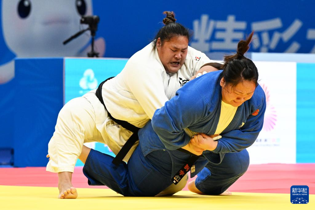当日,第十五届全国运动会柔道项目女子78公斤以上级金牌赛和铜牌赛在广东省肇庆市举行。