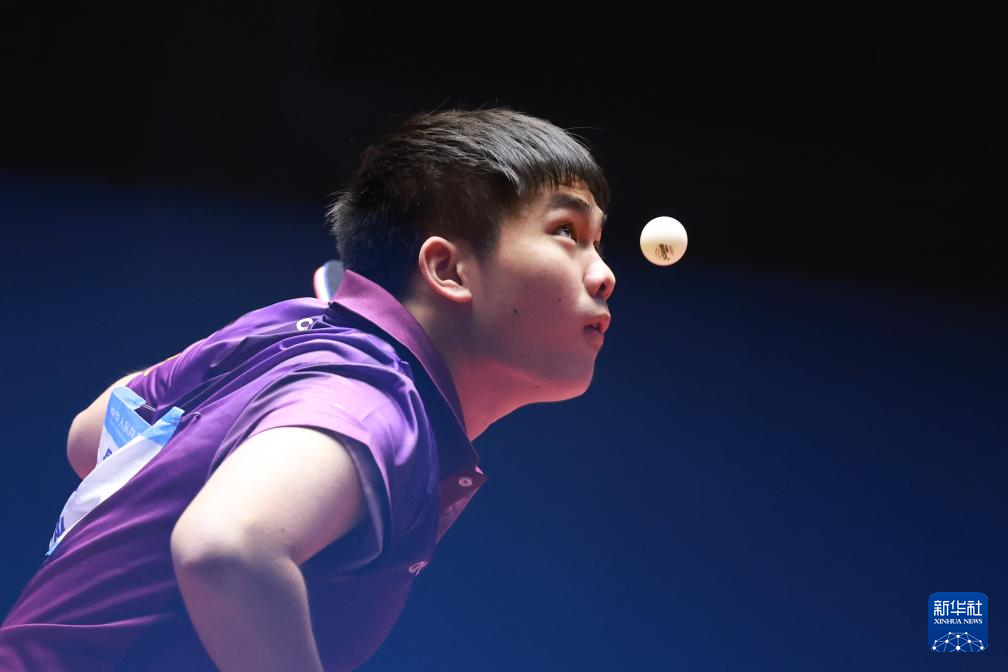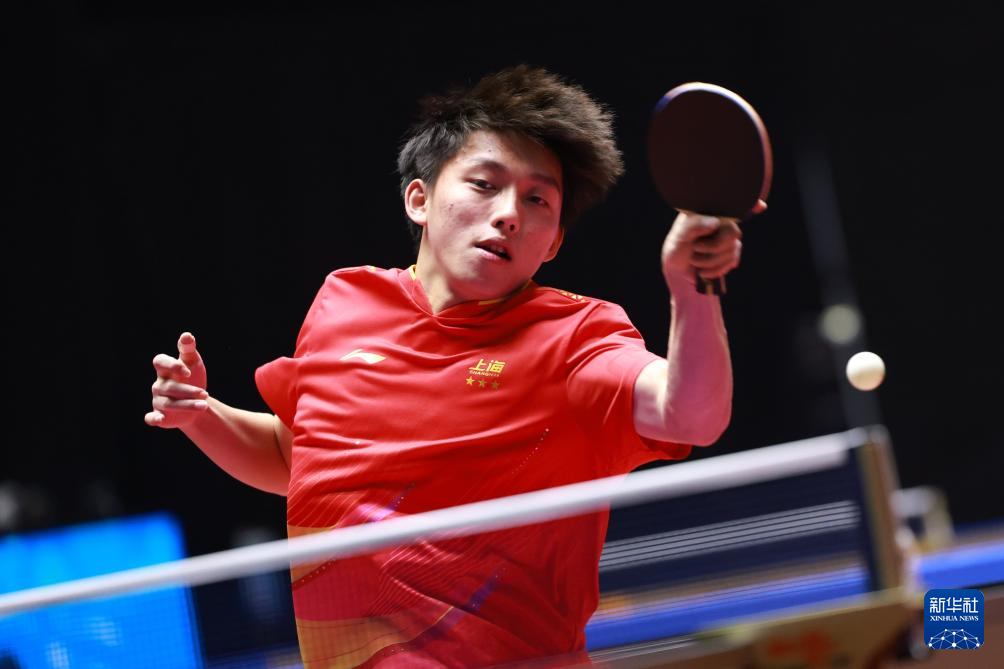 11月12日,上海队选手周冠宏在比赛中回球。