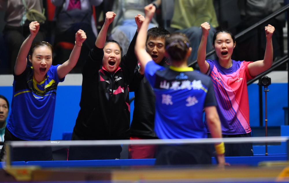 陈梦领衔的山东队与上海队展开了激战。山东队王晓彤/范思琦双打先拿一分,随后陈梦与陈熠展开胶着战,两人打满五局,陈梦2:3遗憾落败。第三盘,范思琦对阵孙铭阳,两人打到决胜局,每局都打到关键分,最终孙铭阳艰难取胜。第四盘,王晓彤耗时5局险胜陈熠。第五盘,陈梦没有再给对手机会,3:0战胜杨屹韵。
