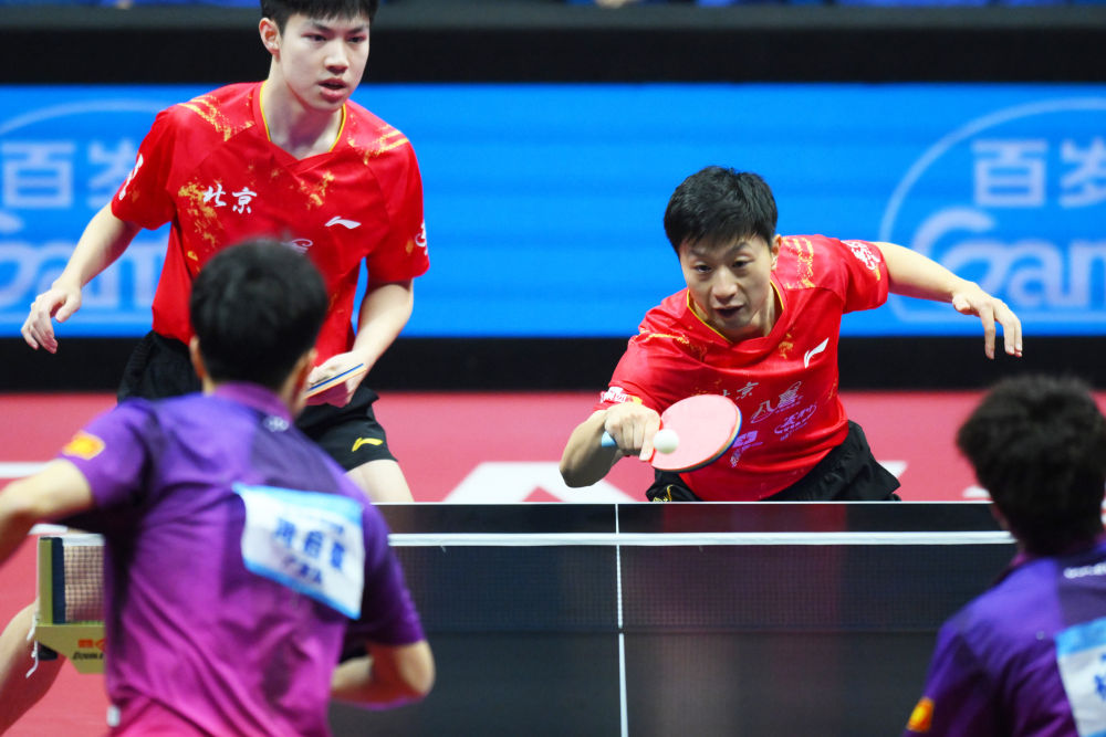 11月18日,北京队组合马龙(右)/黄友政在比赛中。新华社发(张金加摄)