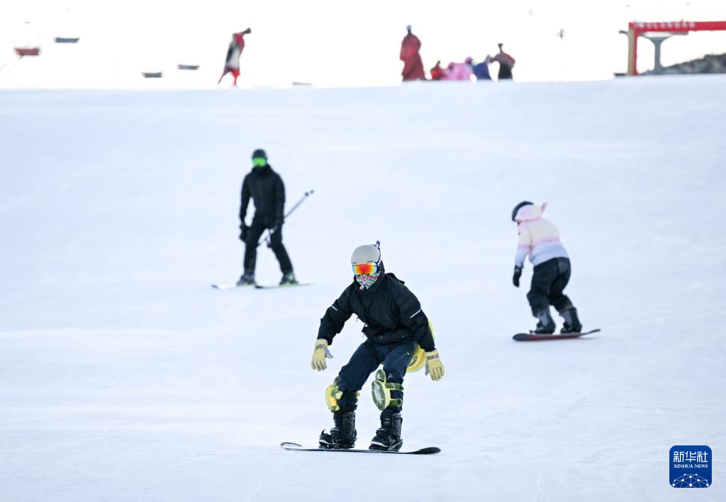 当日,在内蒙古乌兰察布市大河湾滑雪场,众多爱好者享受滑雪的乐趣。