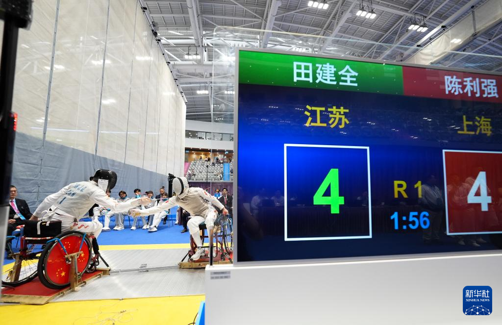 全国第十二届残疾人运动会暨第九届特殊奥林匹克运动会轮椅击剑项目比赛在香港马鞍山体育馆举行。