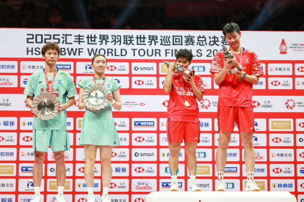 新华社杭州12月21日电(记者丁文娴、许仕豪、夏亮)21日晚,2025年世界羽联世界巡回赛总决赛在杭州奥体中心体育馆落幕。中国队进入四项决赛,最终由冯彦哲/黄东萍夺取混双金牌。韩国队揽得女单、女双、男双三冠,法国队小波波夫以“黑马”之姿称雄男单。