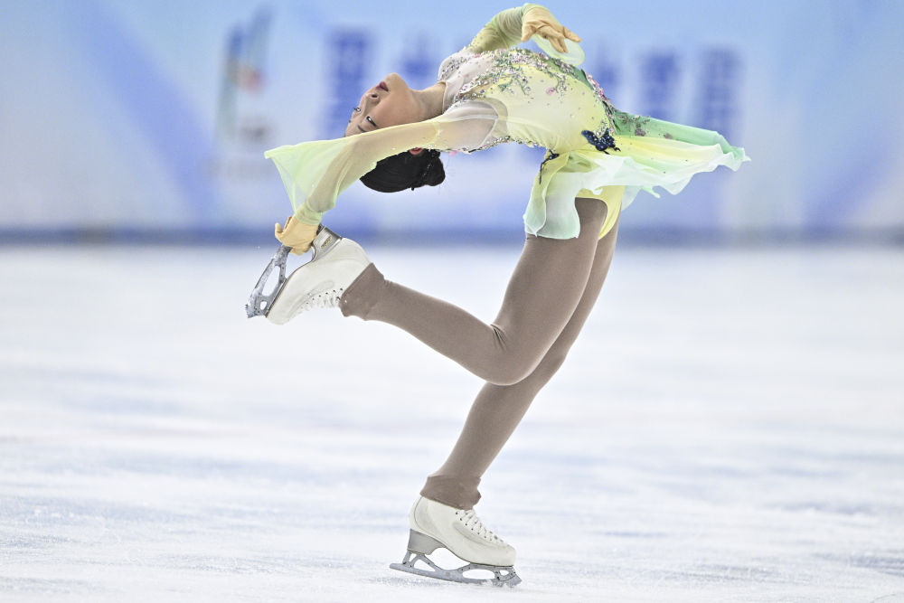 女单自由滑比赛随后进行,14岁小将金书贤以208.85的总分获得冠军,张瑞阳和朱易分列第二、三位。