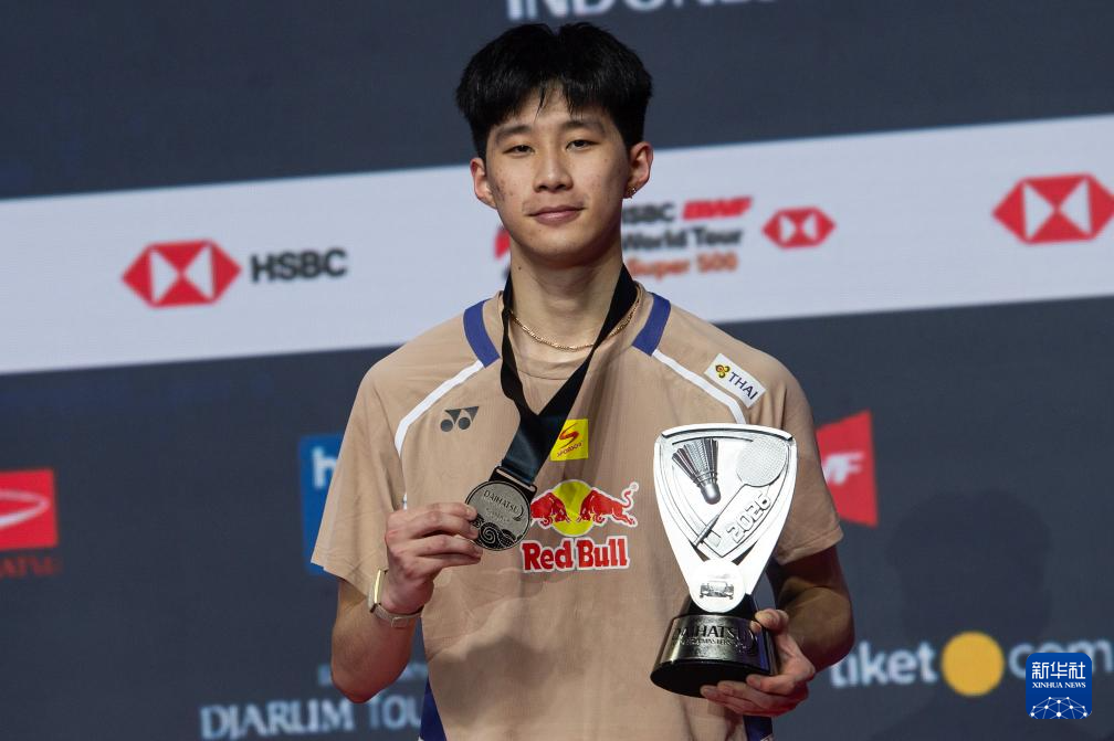 1月25日,亚军帕尼查蓬·提拉萨库在颁奖仪式上留影。