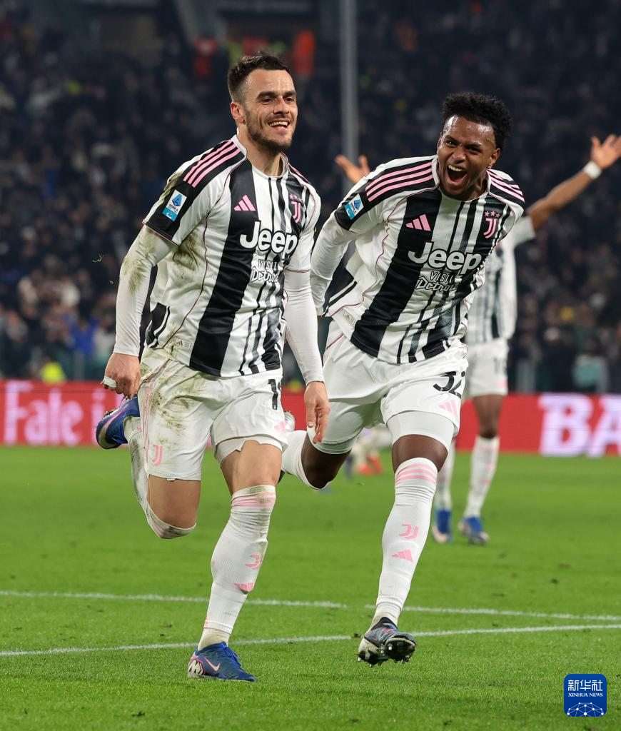 1月25日,尤文图斯队球员伊尔迪兹(右)庆祝进球。