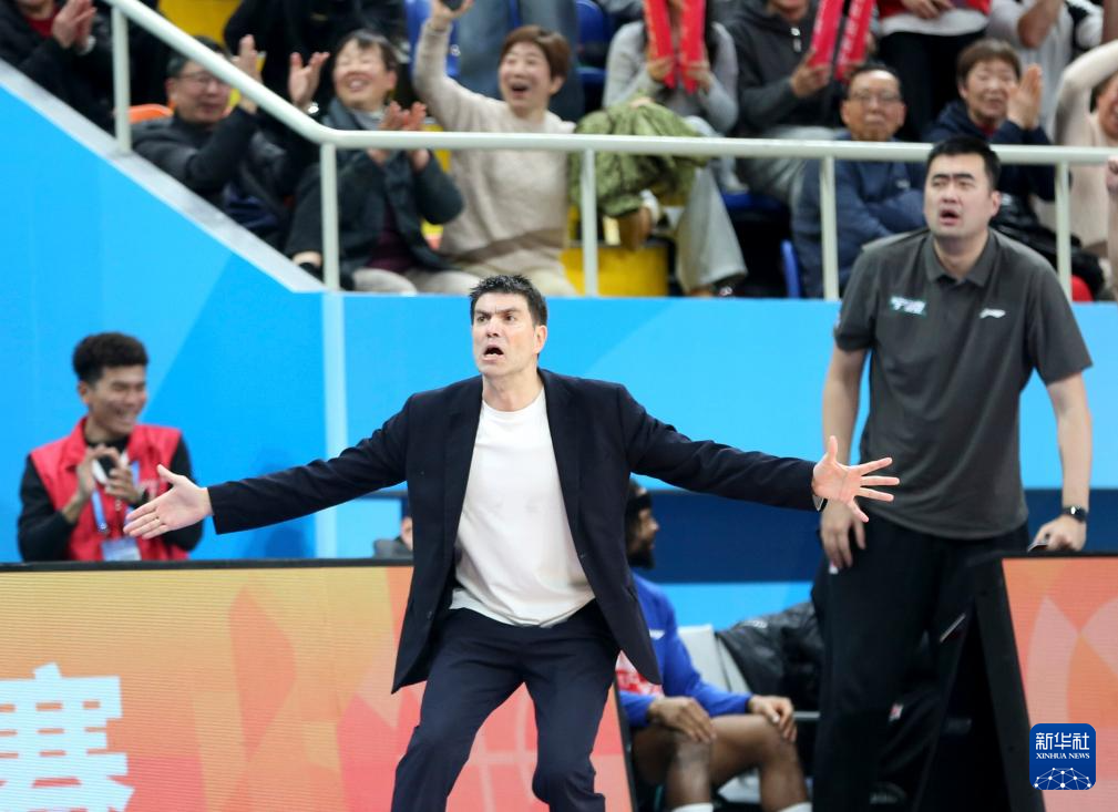 1月25日,宁波町喔队主教练哈里斯在场边指挥比赛。