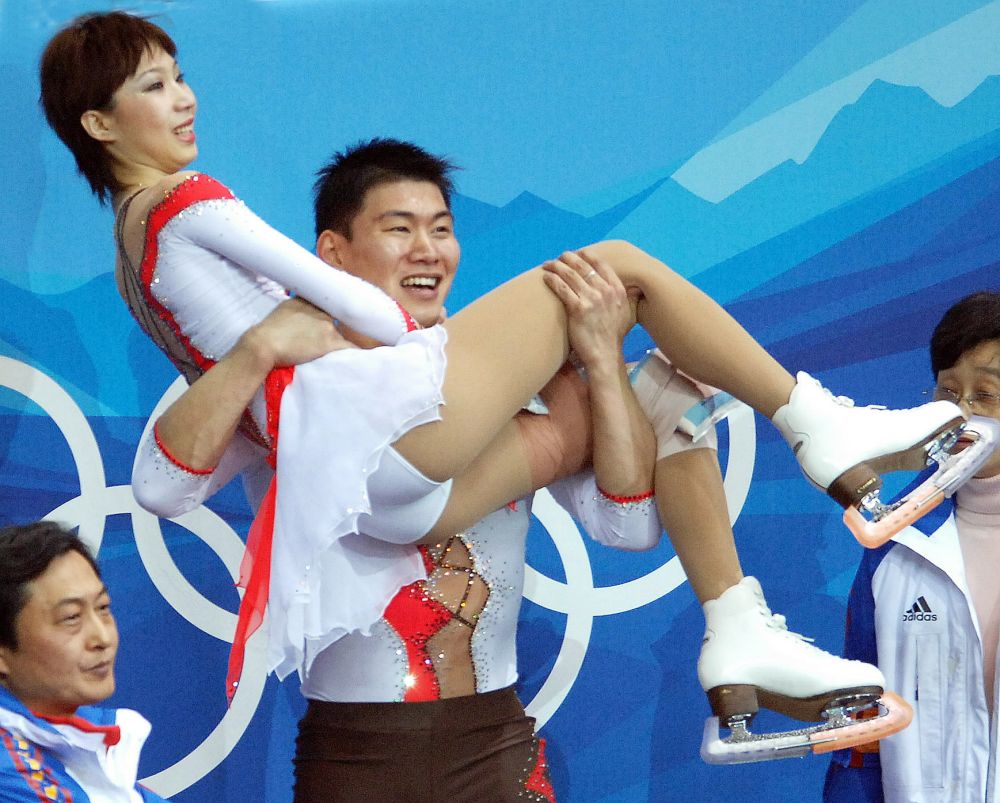 ↑2010年2月15日,申雪/赵宏博在温哥华冬奥会花样滑冰双人滑比赛中夺得冠军。