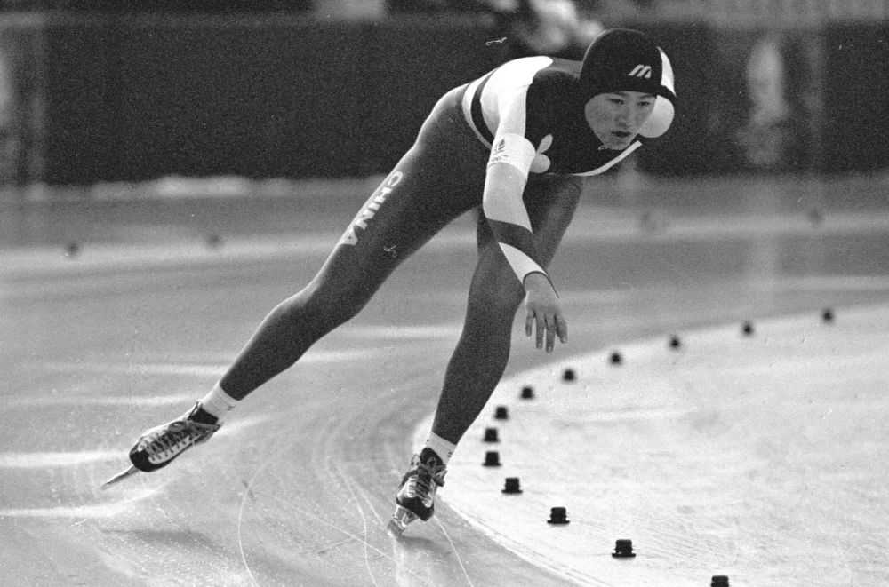 ↑1992年2月10日,叶乔波夺得阿尔贝维尔冬奥会速度滑冰女子500米银牌。