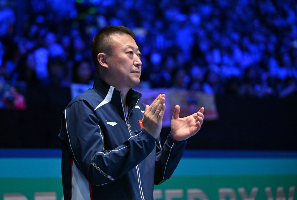 2月4日,教练马琳在比赛中为孙颖莎鼓掌。新华社记者 郭程 摄