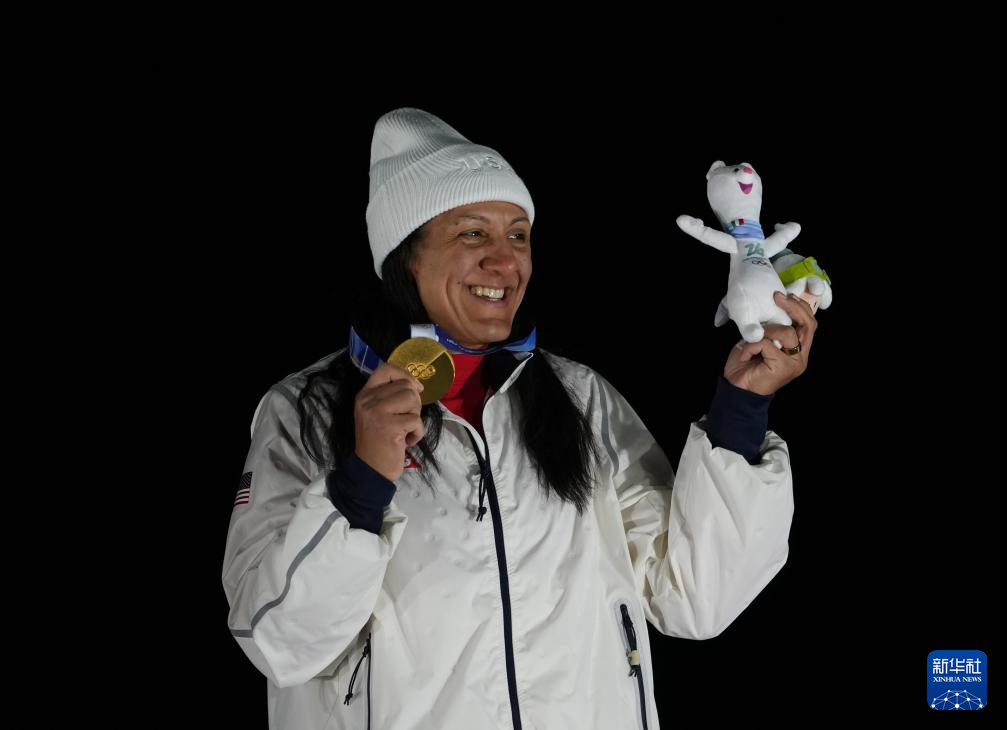 2月16日,冠军美国选手埃拉娜·迈耶斯·泰勒在颁奖仪式上。