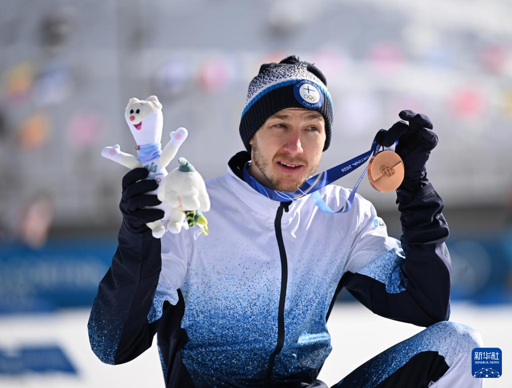 2月17日,季军芬兰选手海罗拉在颁奖仪式上。