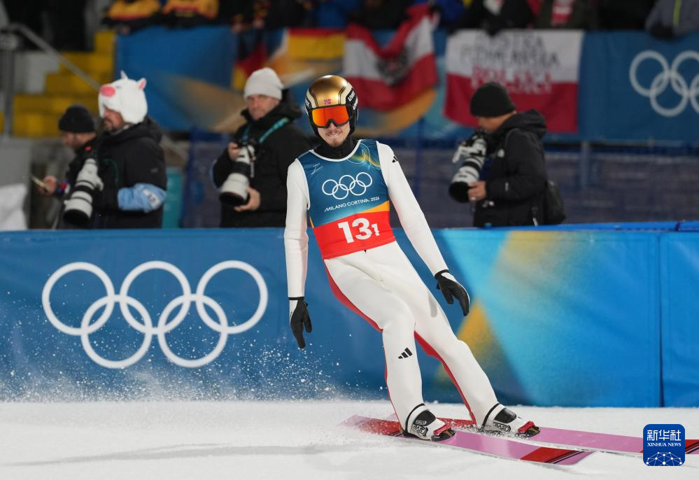当地时间2月16日,米兰—科尔蒂纳冬奥会跳台滑雪项目男子超级团体比赛在意大利普雷达佐举行。