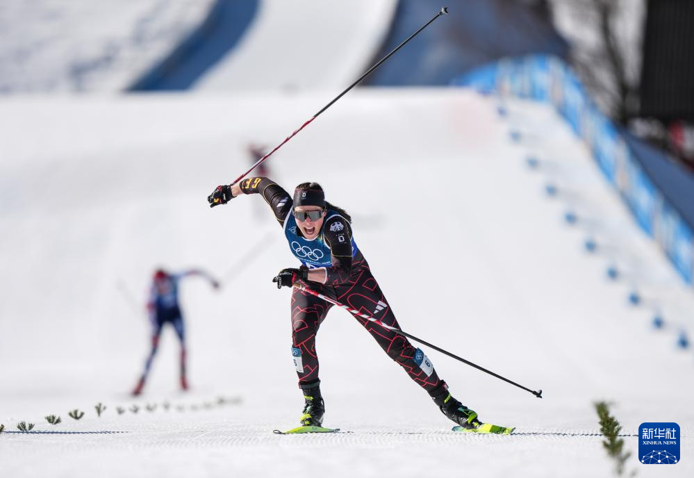 2月18日,德国队选手雷策克在比赛中冲线。最终德国队获得季军。