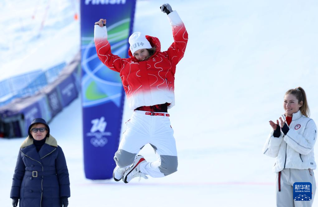 2月18日,美国选手希夫林在比赛后。她获得冠军。