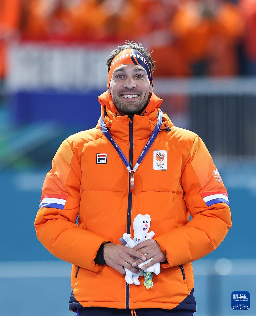 2月19日,季军荷兰选手凯尔·内斯在颁奖仪式上。