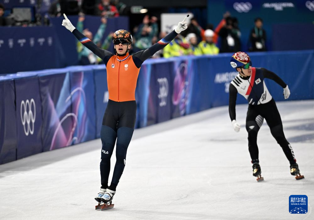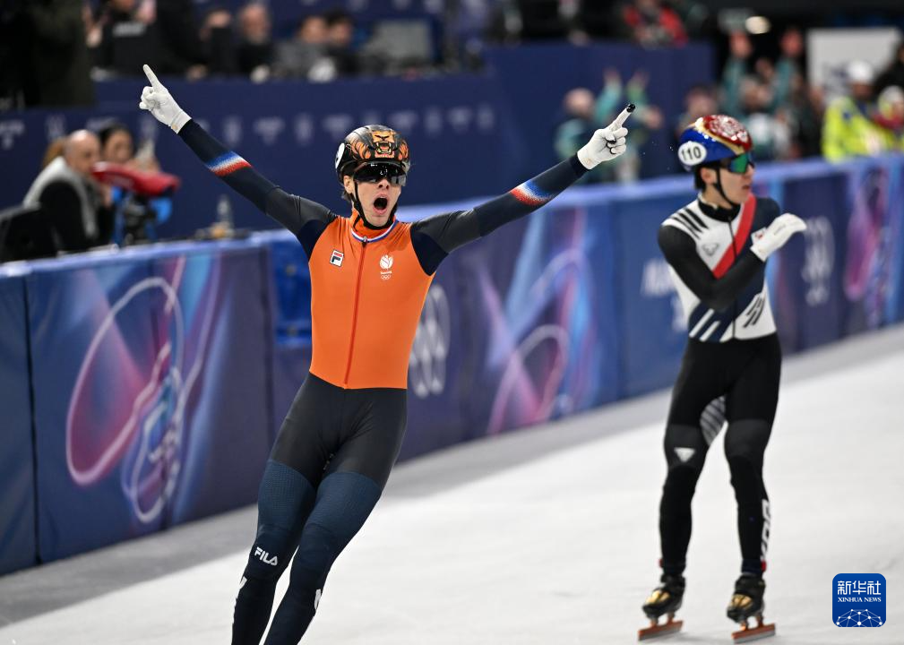 2月20日,荷兰队选手延斯·范特·沃特在冲线后庆祝。
