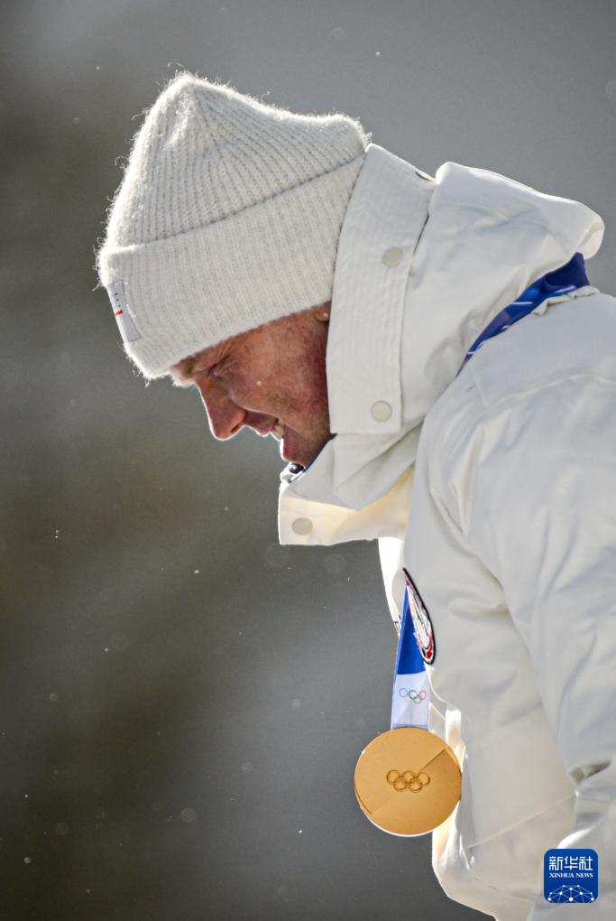 2月20日,冠军挪威选手约翰内斯·戴尔在颁奖仪式后留影。