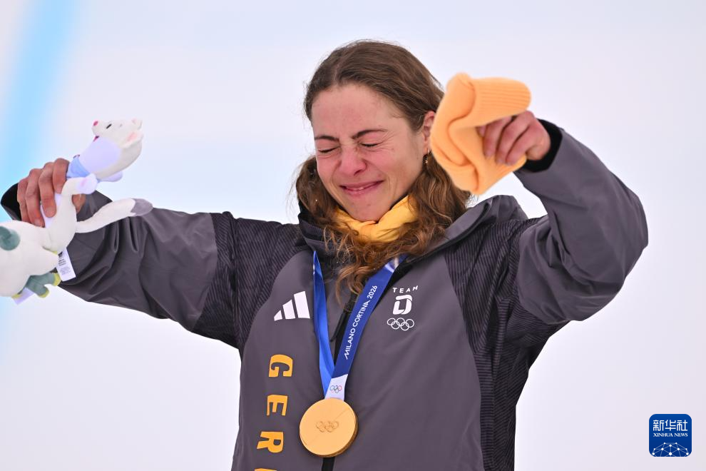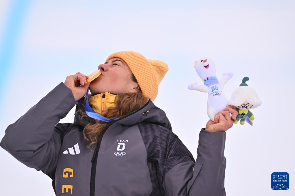 2月20日,冠军德国选手达妮埃拉·迈尔在颁奖仪式上。