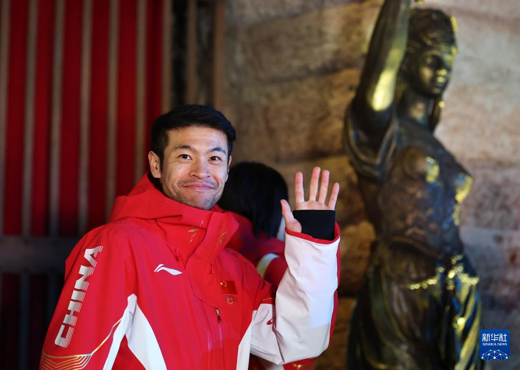 2月22日,中国体育代表团成员、速度滑冰运动员宁忠岩在闭幕式后。