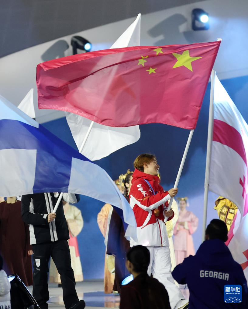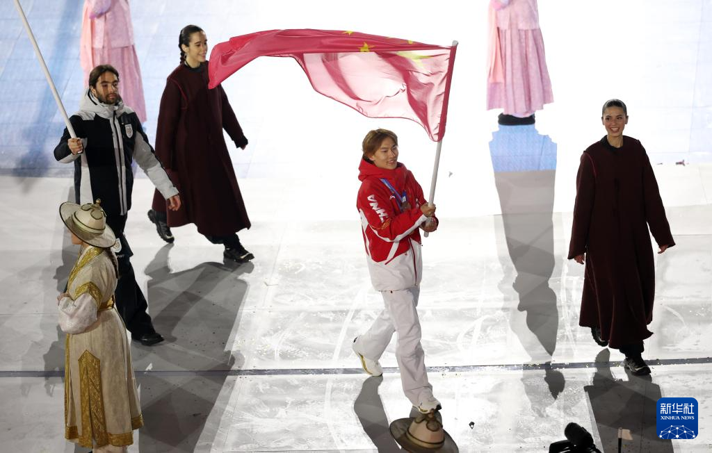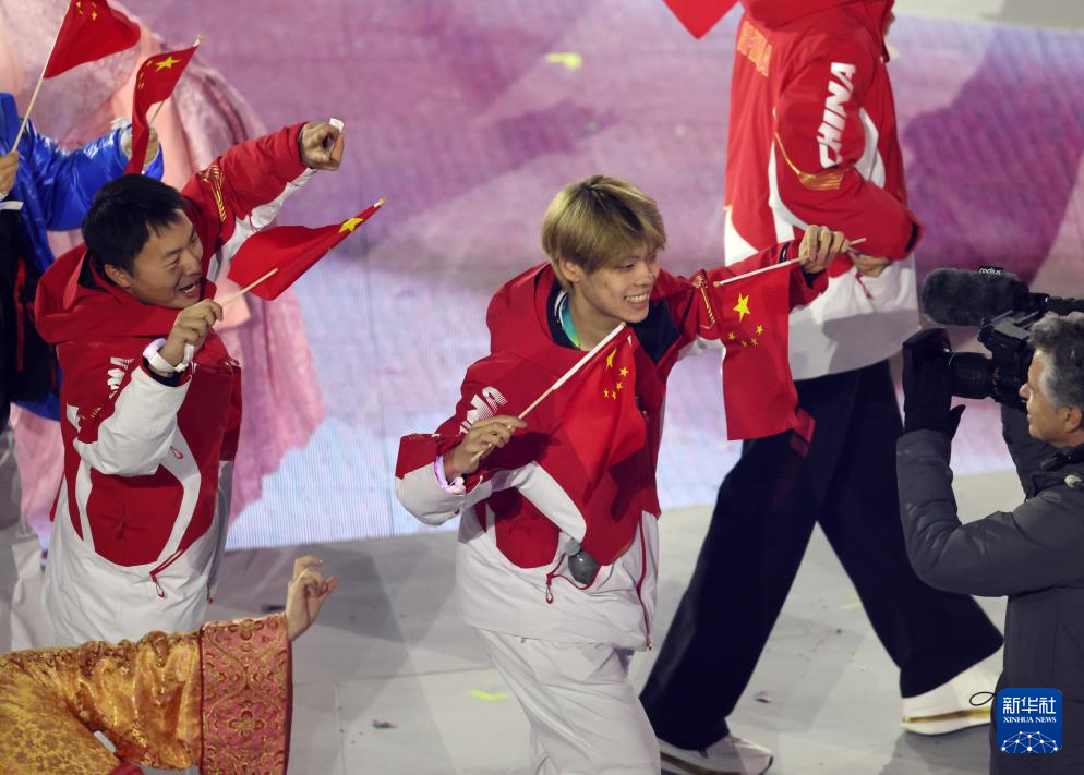 2月22日,中国体育代表团旗手苏翊鸣在闭幕式上入场。