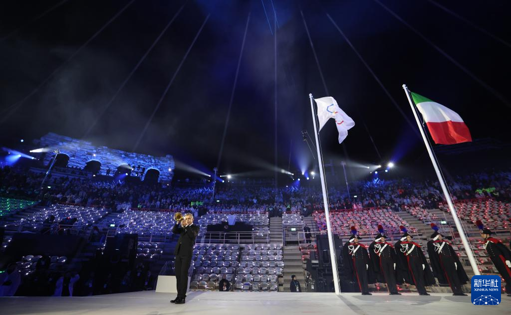 2月22日,意大利国旗在闭幕式上升起。