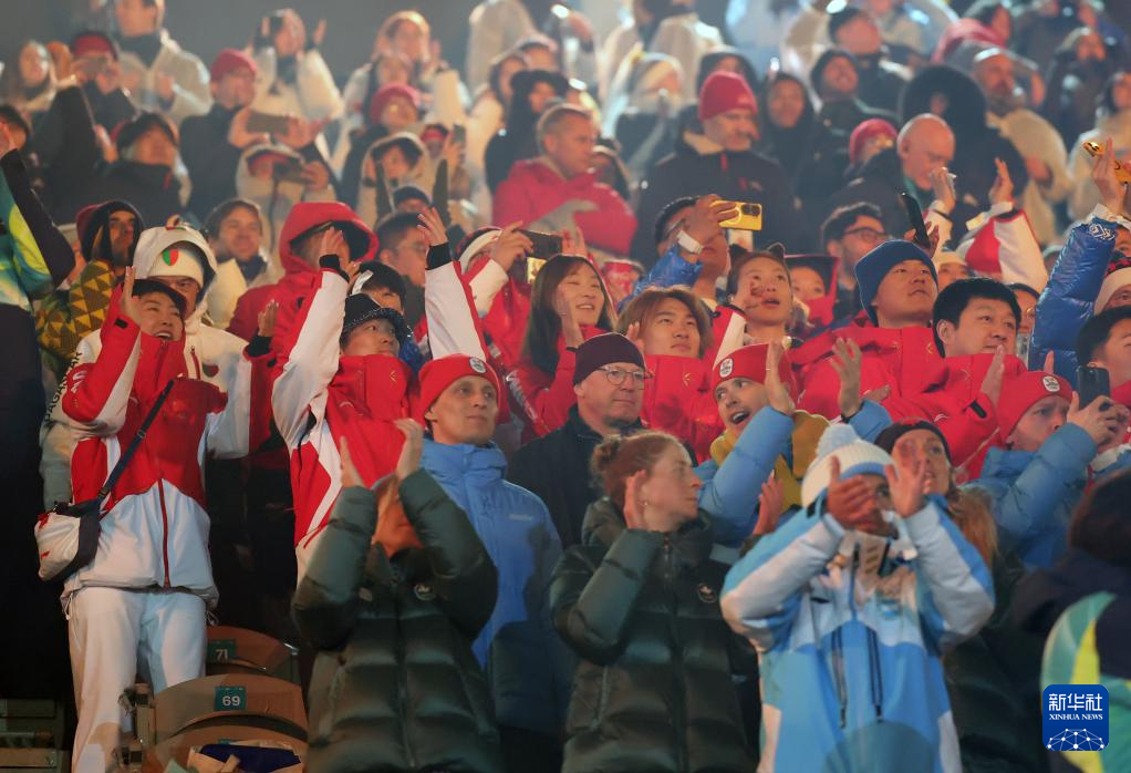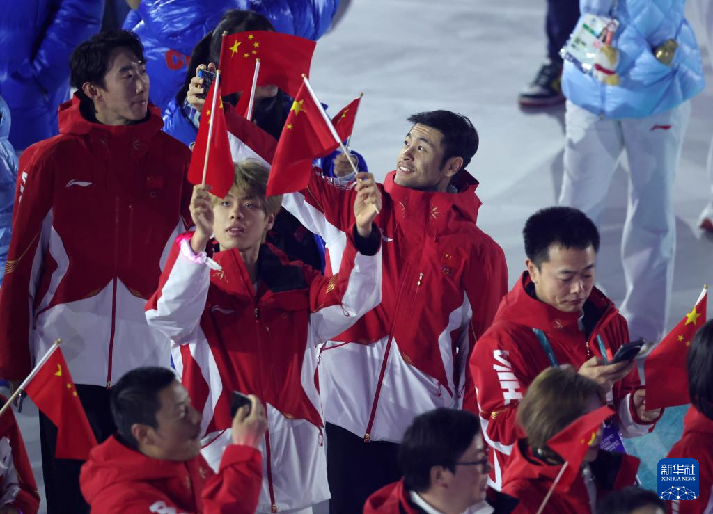 2月22日,中国体育代表团成员在闭幕式上。