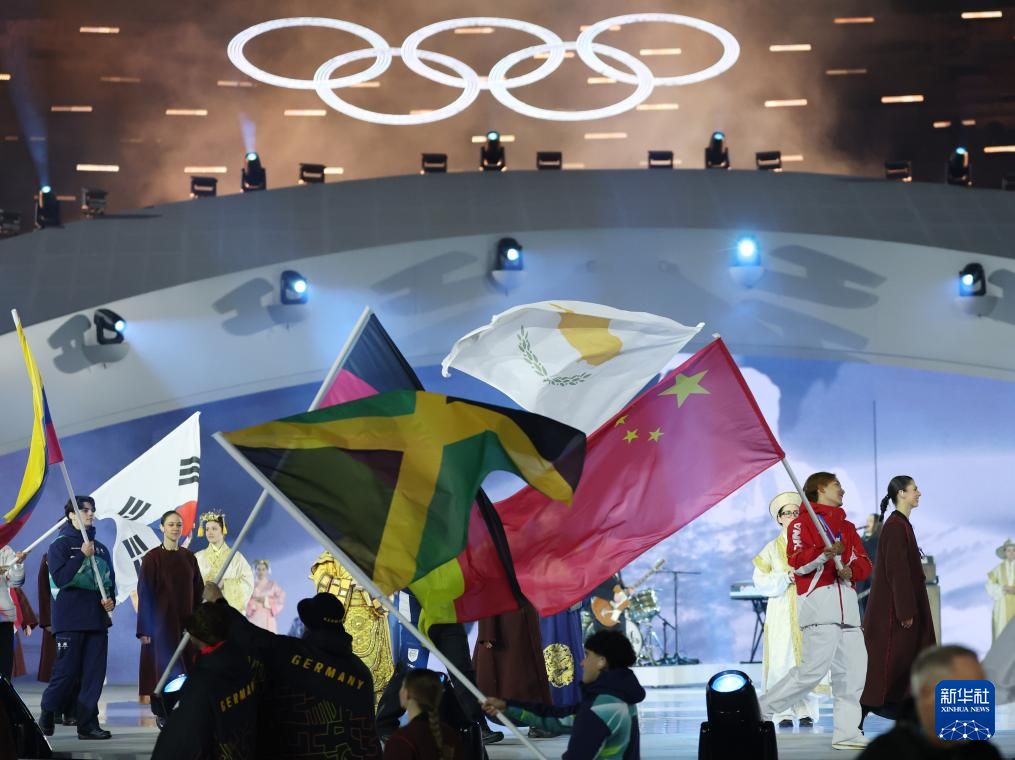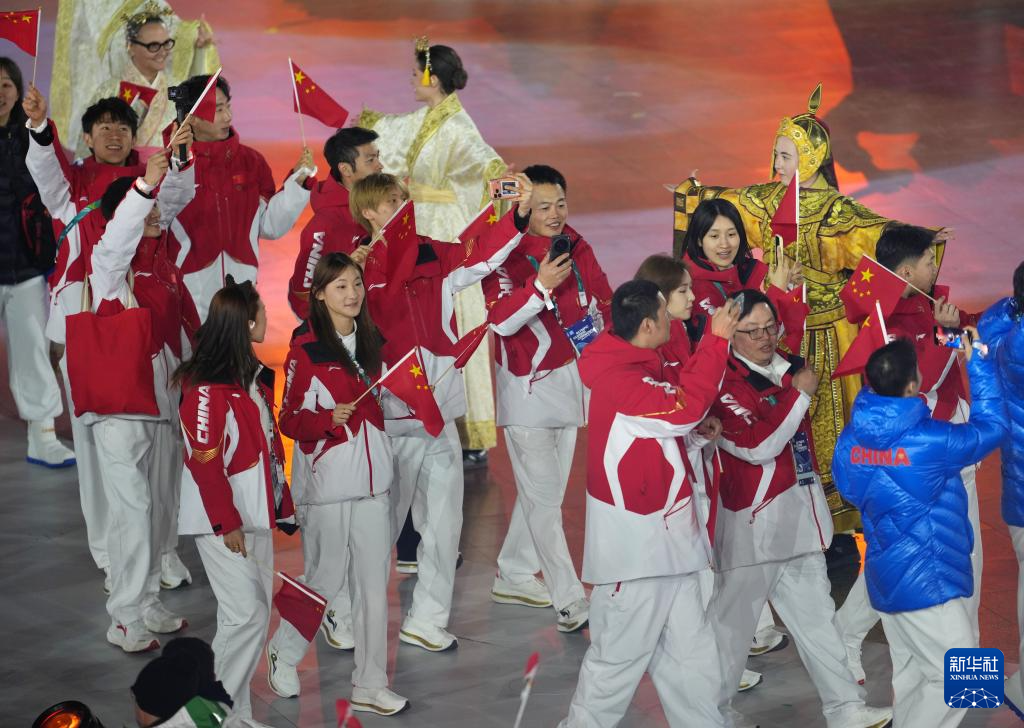 2月22日,中国体育代表团在闭幕式上入场。