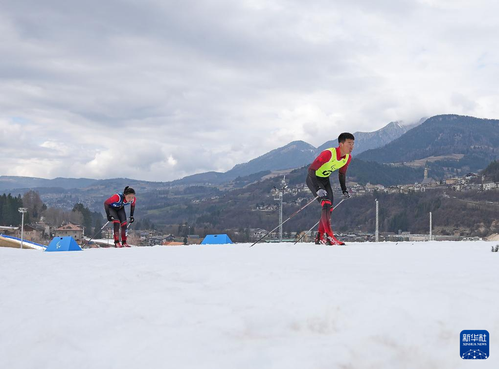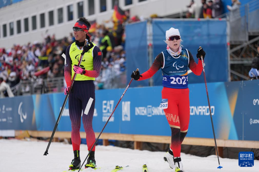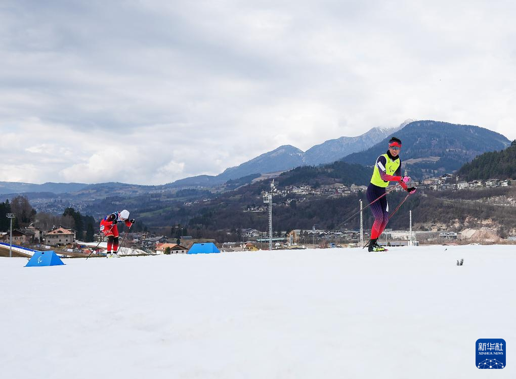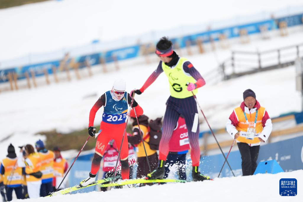 当地时间3月11日,米兰-科尔蒂纳冬残奥会越野滑雪女子中距离(视障)比赛在意大利泰塞罗举行。
