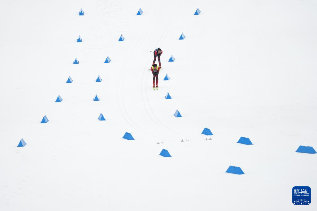 3月11日,中国选手丛吉鸿(后)和引导员刘佳璇在比赛中。