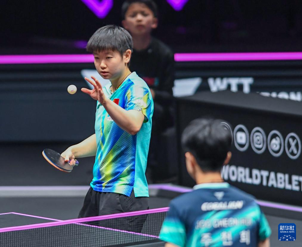3月12日,在重庆进行的世界乒乓球职业大联盟(WTT)重庆冠军赛女子单打首轮比赛中,中国选手孙颖莎3比0战胜韩国选手朱芊曦,晋级16强。