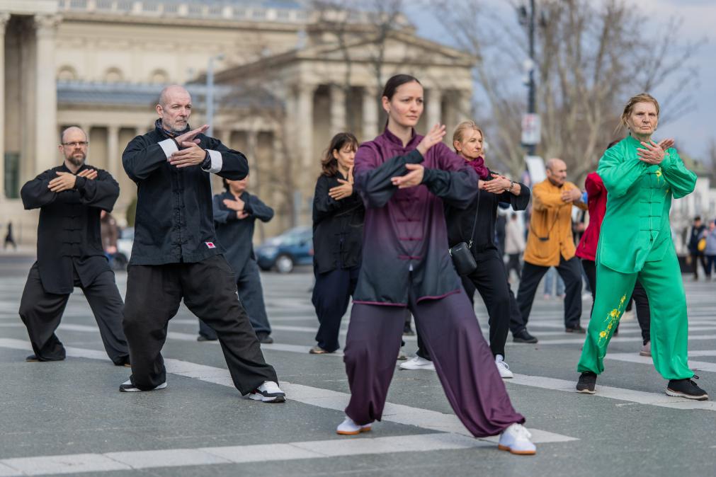 3月21日,匈牙利武术联合会组织当地太极拳爱好者进行展演,庆祝首个“国际太极拳日”。新华社发(康奇·马顿摄)
