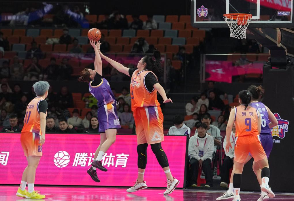 下半场伊始,南区队在徐紫奇和李雨汧等人的带领下打出12:2的得分潮,一度将分差缩小至个位数。张子宇回到场上后,北区队在防守端逐渐稳住阵脚。她与刘贝第三节合砍15分,帮助北区队在三节过后领先多达26分,比赛胜负失去悬念。
