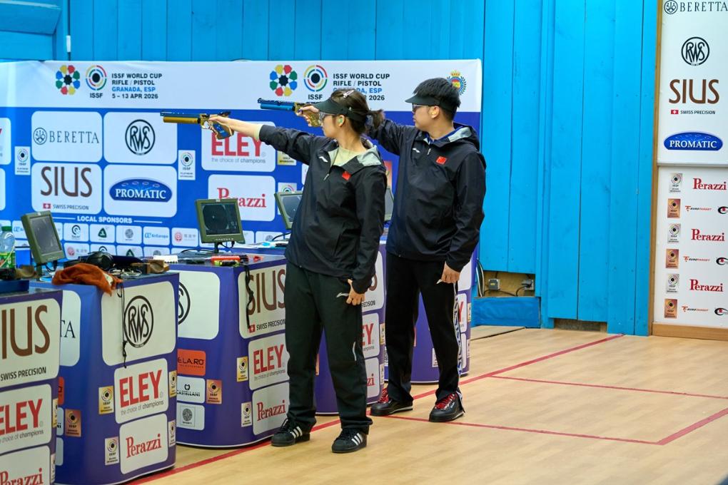 新华社北京4月7日电 国际射联官网消息,2026年射击世界杯西班牙站7日决出了10米气步枪混合团体和10米气手枪混合团体两个项目的金牌,王子菲/盛李豪拿到步枪混团金牌,姚千寻/胡凯摘得手枪混团银牌。