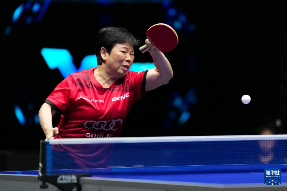4月9日,卢森堡选手倪夏莲在比赛中回球。