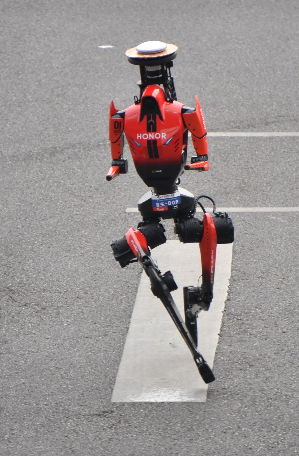 本次赛事,人形机器人依次起跑,在专用赛道内进行比赛。今年比赛分为自主导航和遥控两种参赛方式,两个组别加权系数分别是净时成绩的1.0与1.2。本次夺冠的齐天大圣队“闪电”机器人为自主导航。