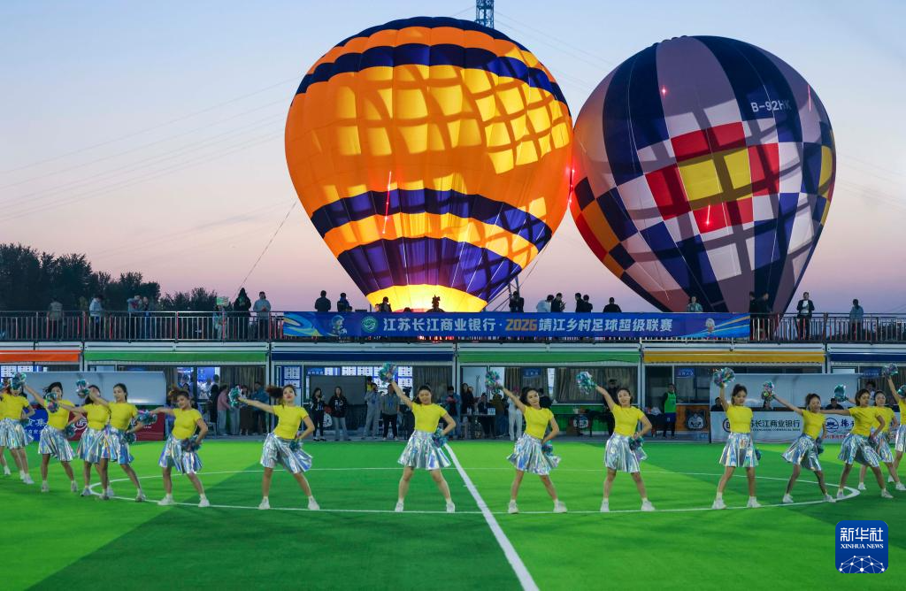 4月19日,2026靖江乡村足球超级联赛揭幕战在江苏省靖江市江畔足球场举行。本次“村超”共有19支乡村球队参赛,赛事将持续至8月底,共进行93场比赛。