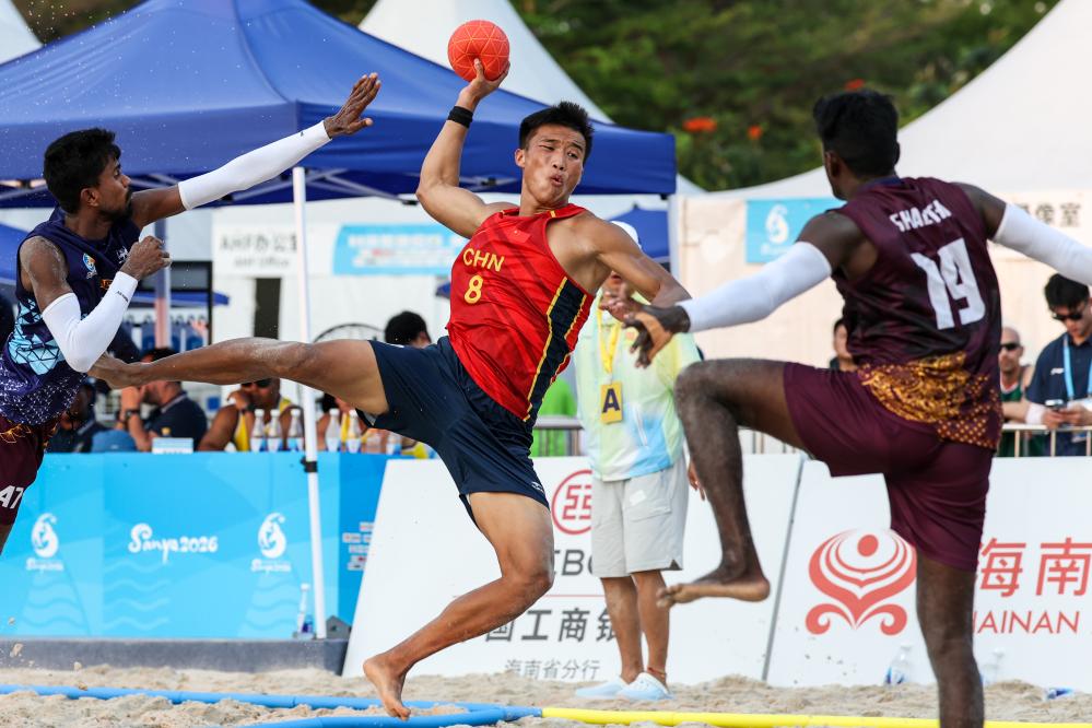 新华社三亚4月21日电(记者王君宝、杨博毅)21日,第六届亚洲沙滩运动会在海南三亚迎来首个比赛日的争夺,中国队在男子沙滩手球预赛中收获一胜一负。