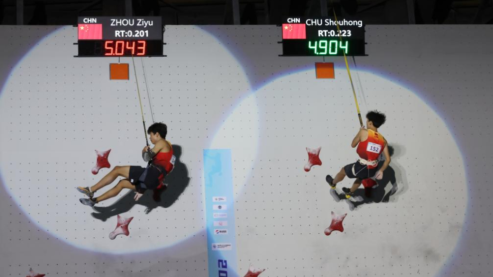 攀岩——亚锦赛:中国选手包揽男子速度决赛冠亚军