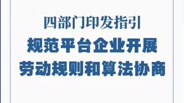 四部门联合印发《平台劳动规则和算法协商指引(试行)》