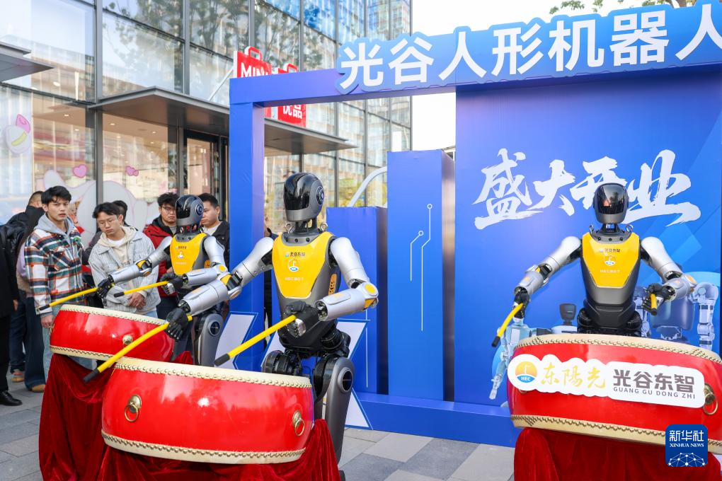 11月11日,在湖北武汉东湖新技术开发区地铁站旁的一处商圈,一家人形机器人7S店正式面向市民亮相,开业即迎来火爆客流。