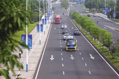 图为参加2023智博会智能汽车应用场景挑战赛L3级/L4级自动驾驶公交车组别赛事的车辆行驶在重庆城区道路上。资料图片